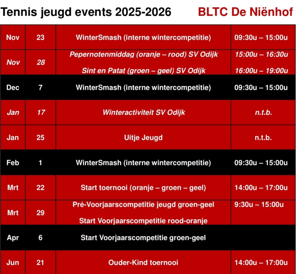 Copyright 2025 © B.L.T.C. De Niënhof - Powered by KNLTB.Club - Built by LISA
